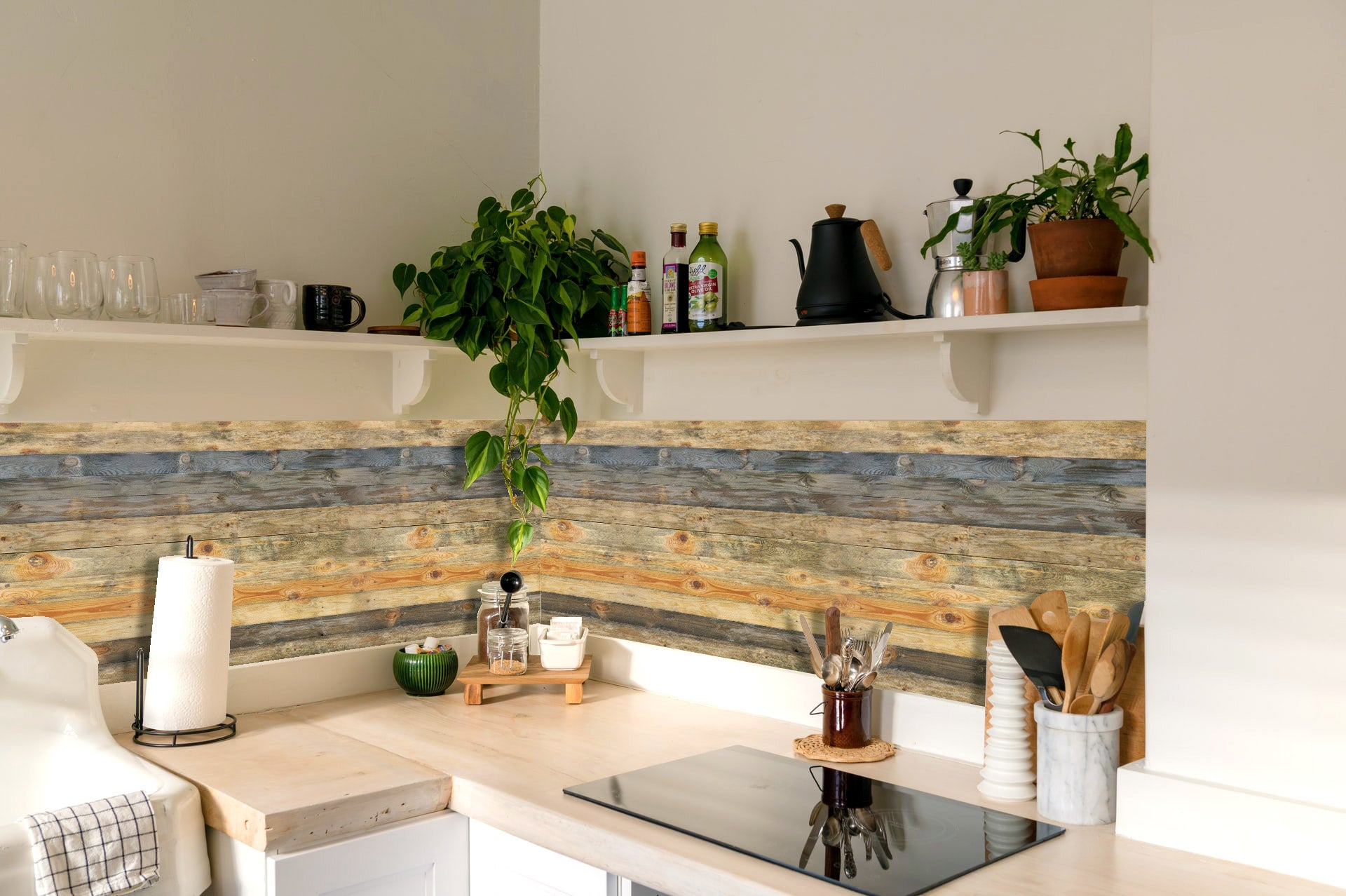 Wenn Sie schon einmal ein Bad oder eine Küche gefliest haben, wissen Sie, wie viel Arbeit das ist. Die alten Fliesen müssen in aufreibender Kleinarbeit von der Wand entfernt, die neuen aufwändig verfugt werden. Unsere Küchenrückwand Beispiele hingegen sind innerhalb weniger Stunden auf den vorherigen Untergrund aufgeklebt. Noch dazu haben Sie mit Duschrückwand Holzdekor, Duschrückwand Steindekor und anderen Motiven viele verschiedene Gestaltungsmöglichkeiten. Falls Sie sich einmal umentscheiden – kein Problem! Küchenrückwand Beispiele lassen sich rückstandslos von der Wand entfernen und austauschen.