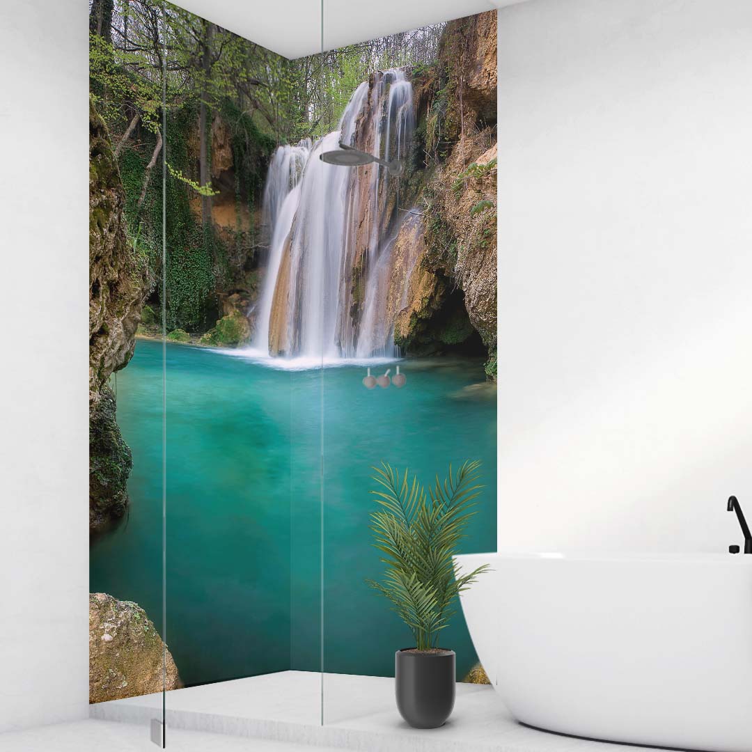 Produktinformationen "Blederija Wasserfall Serbien über Eck Set, fugenlose Wandpaneele aus Alu-Verbund 3mm, Duschrückwand "